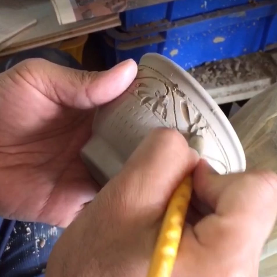 細やかな彫りと飛び鉋によるリズム感が、シンプルな中にも