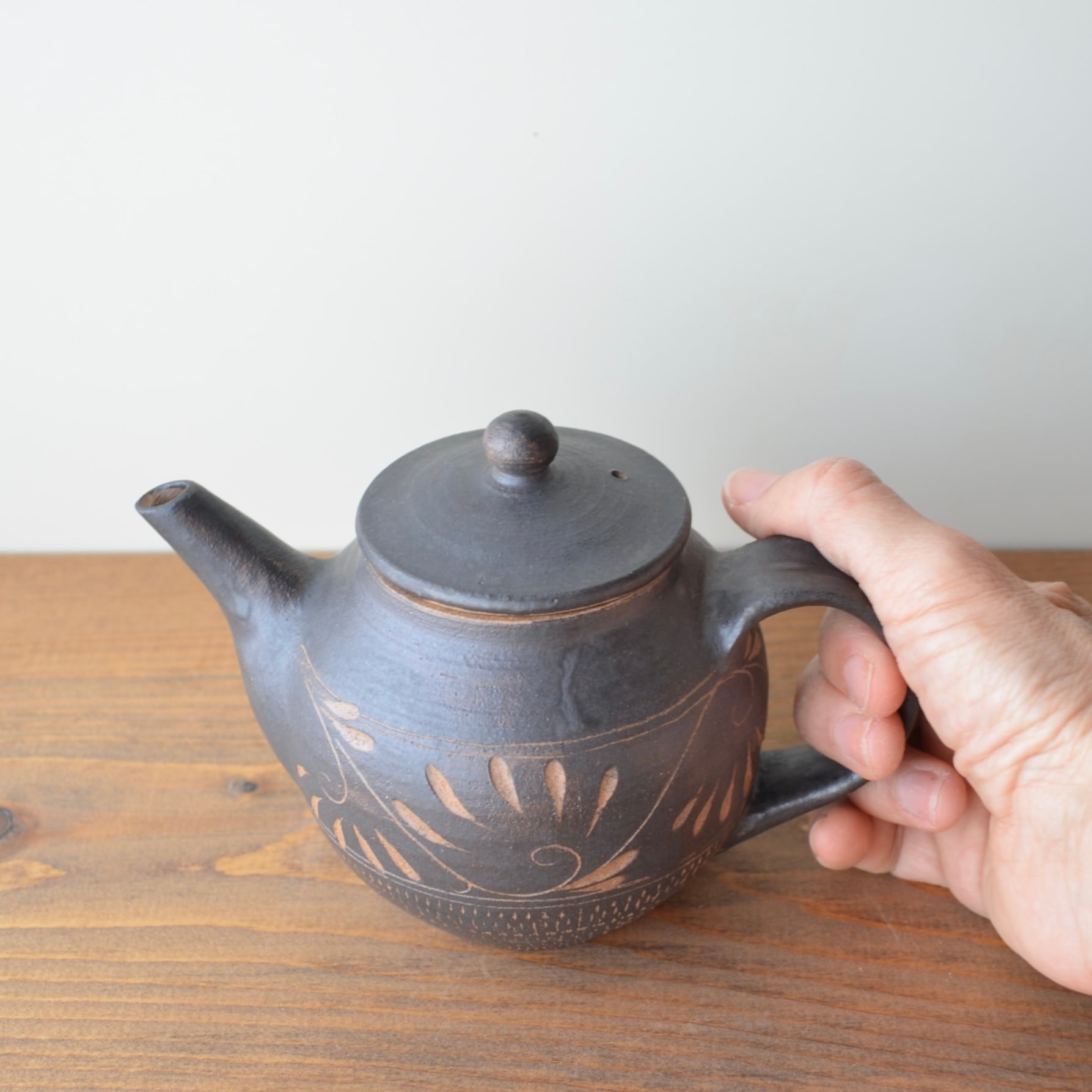 筆で丁寧に塗り重ね、渋みのあるマットな質感に焼き上げました。