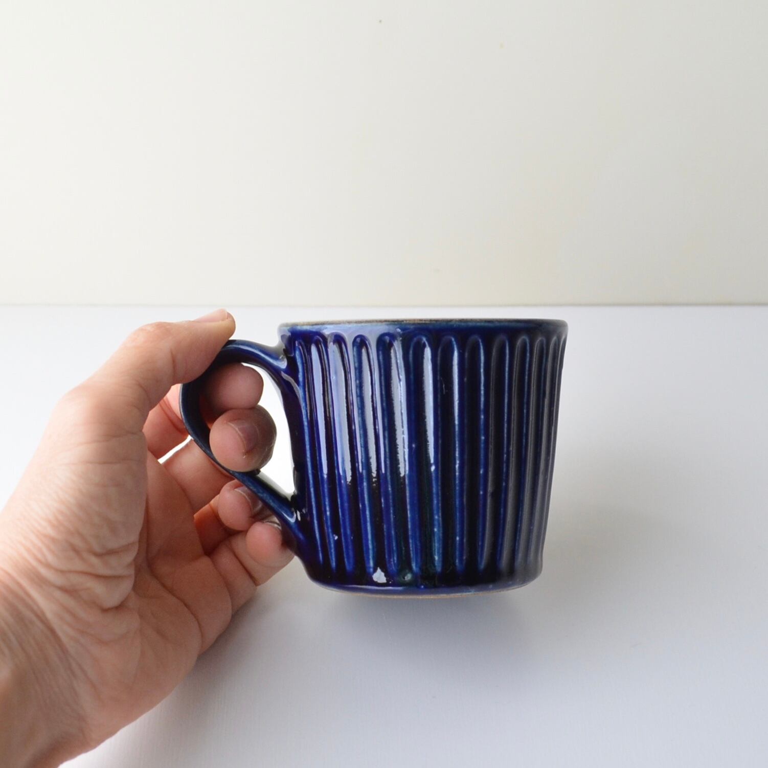 コバルト釉と、釉薬を掛け分けて焼成しました。